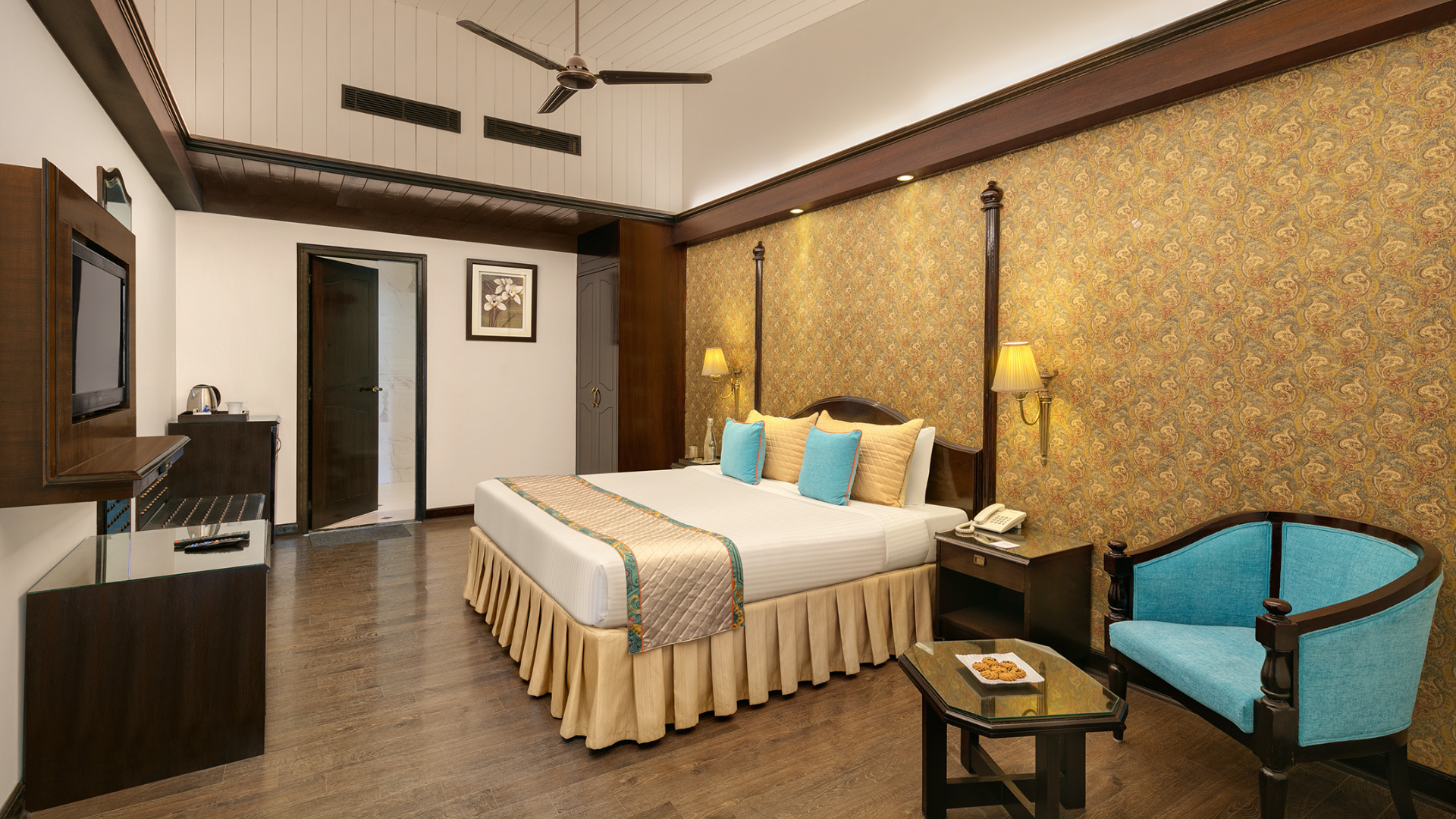 The Superior Rooms are spacious, ranging from 200 to 300 sq. ft. and offer exquisite views of the mountains and gardens. They are equipped with essential amenities such as a mini-refrigerator, a hairdryer, a tea/coffee maker, a centralized heating system, and hot & cold water facility.